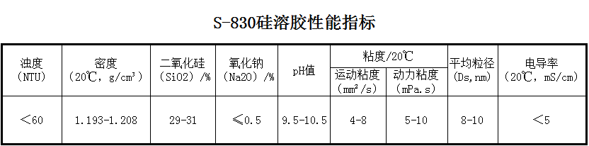 性能介绍: 针对中国铸造业长期存在的面、背层硅溶胶不分,铸件表面光洁度不够,字体跑位或不清晰较多,面浆涂挂性能差、寿命短等缺陷,公司通过对美国杜邦公司SM-30硅溶胶及台湾830硅溶胶的分析和研究,在大量实验数据的基础上,于1999年率先成功地开发出830型面层专用硅溶胶,其特点是粒径更小,强度更高,已在广东大部分熔模铸造厂中取代进口830硅溶胶。